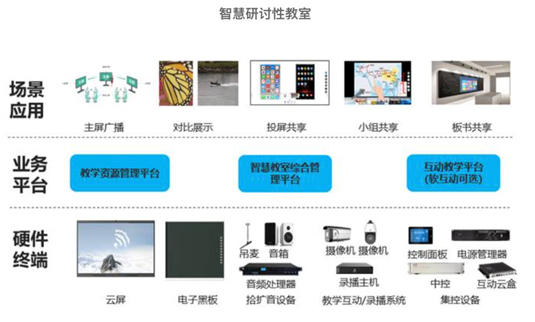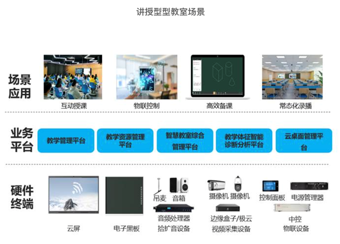服務(wù)三大場景:講授型教室,遠(yuǎn)程互動(dòng)型教室,智慧研討型教室